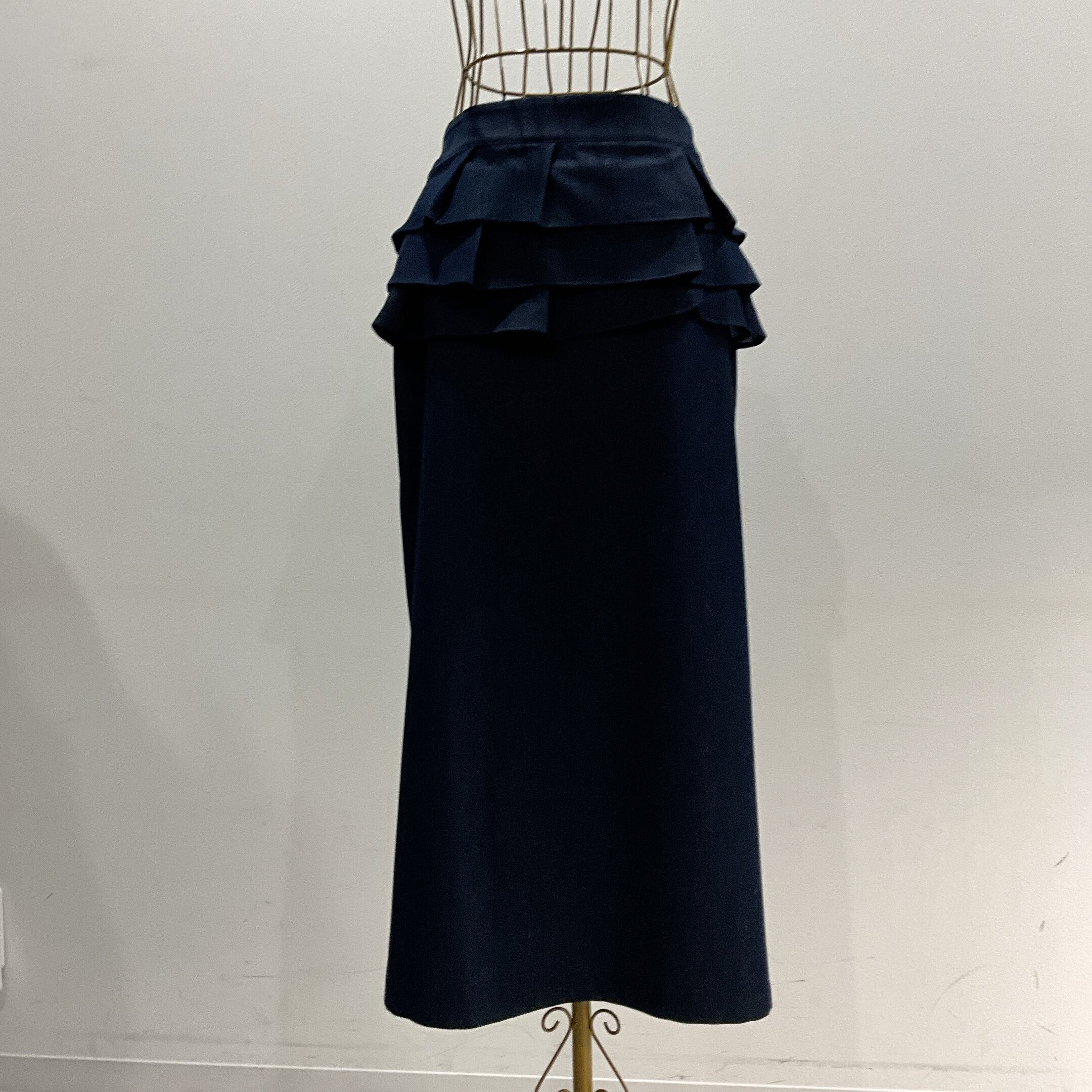 ウエスト部分に立体的なフリルを重ねた、ペプラム風デザインのロングスカート。