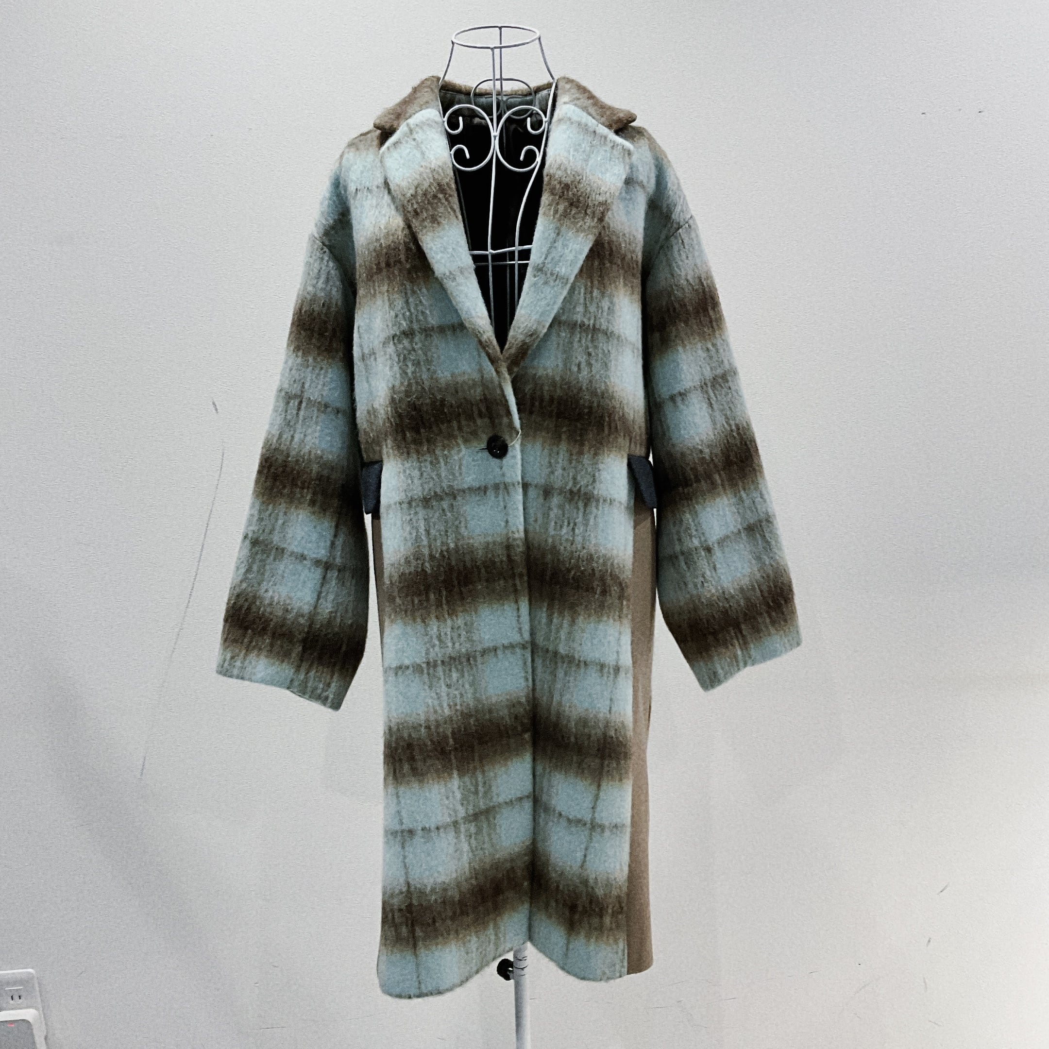 ブルーグリーンを基調に、ブラウンのチェックを重ねた絶妙な配色が、大人の余裕を感じさせる一着です。