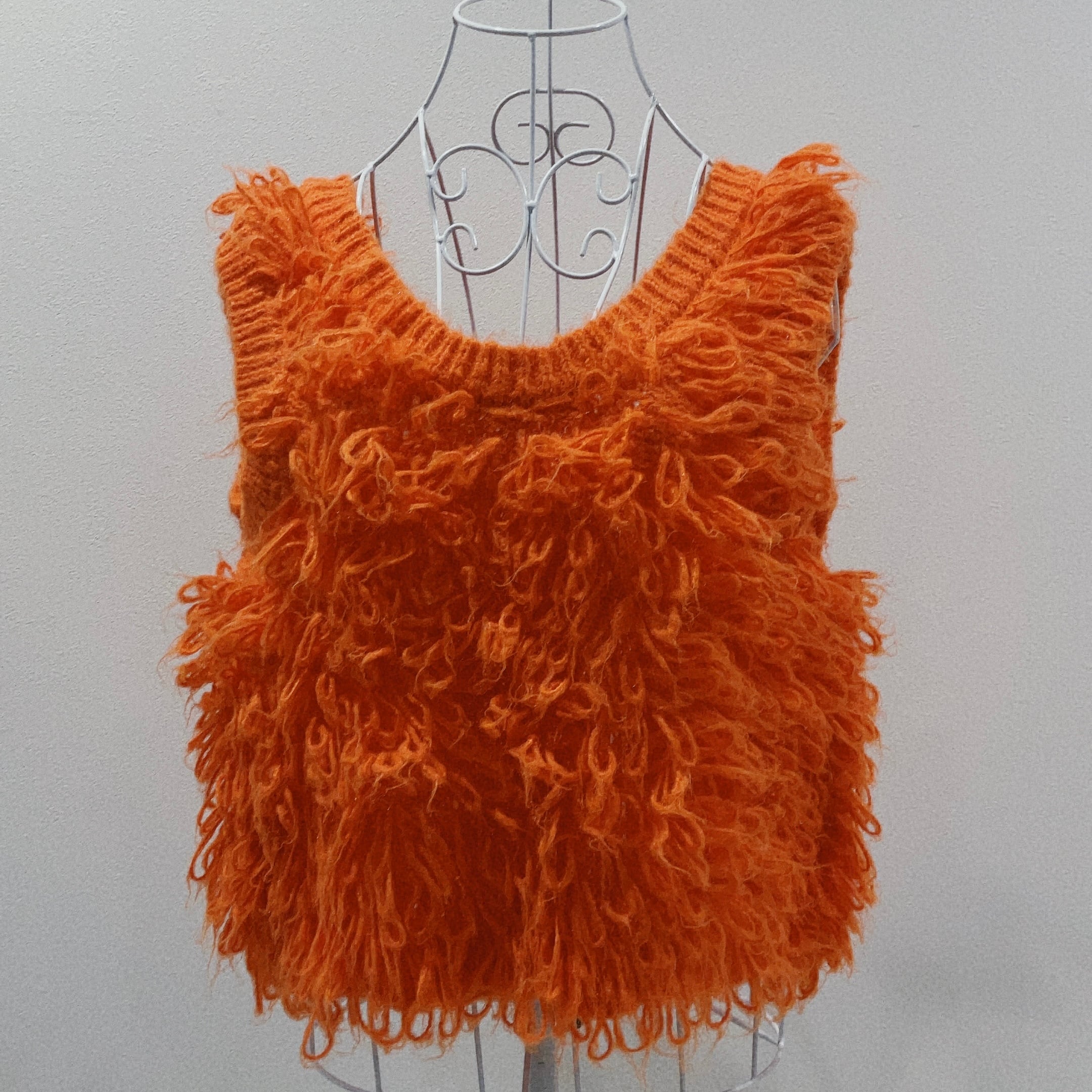 毛足の長いシャギーファーが印象的な、存在感たっぷりのニットベスト。