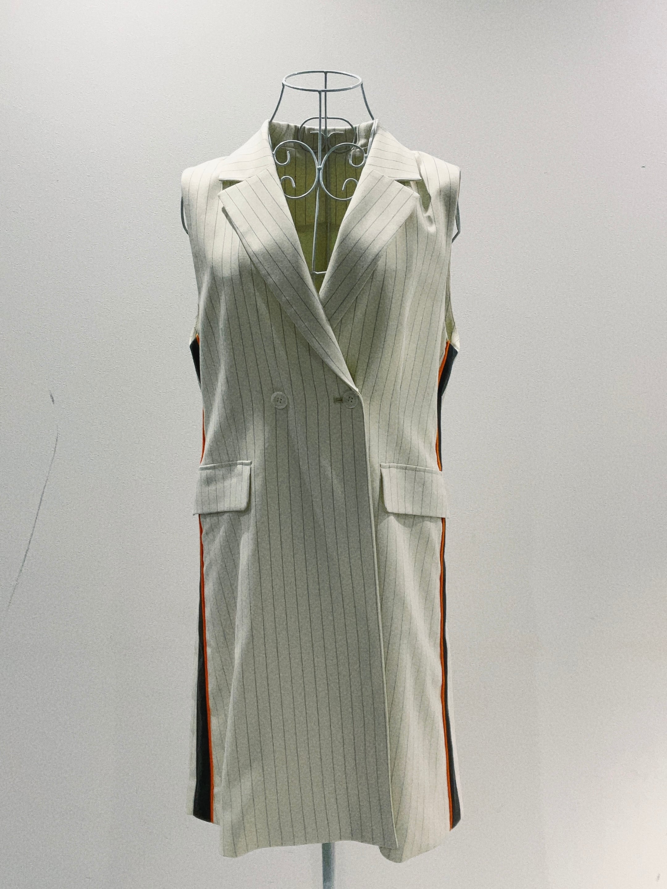 Le's Ageu(レ・アージュ) ピンストライプ サイドラインロングベスト【E-3013】