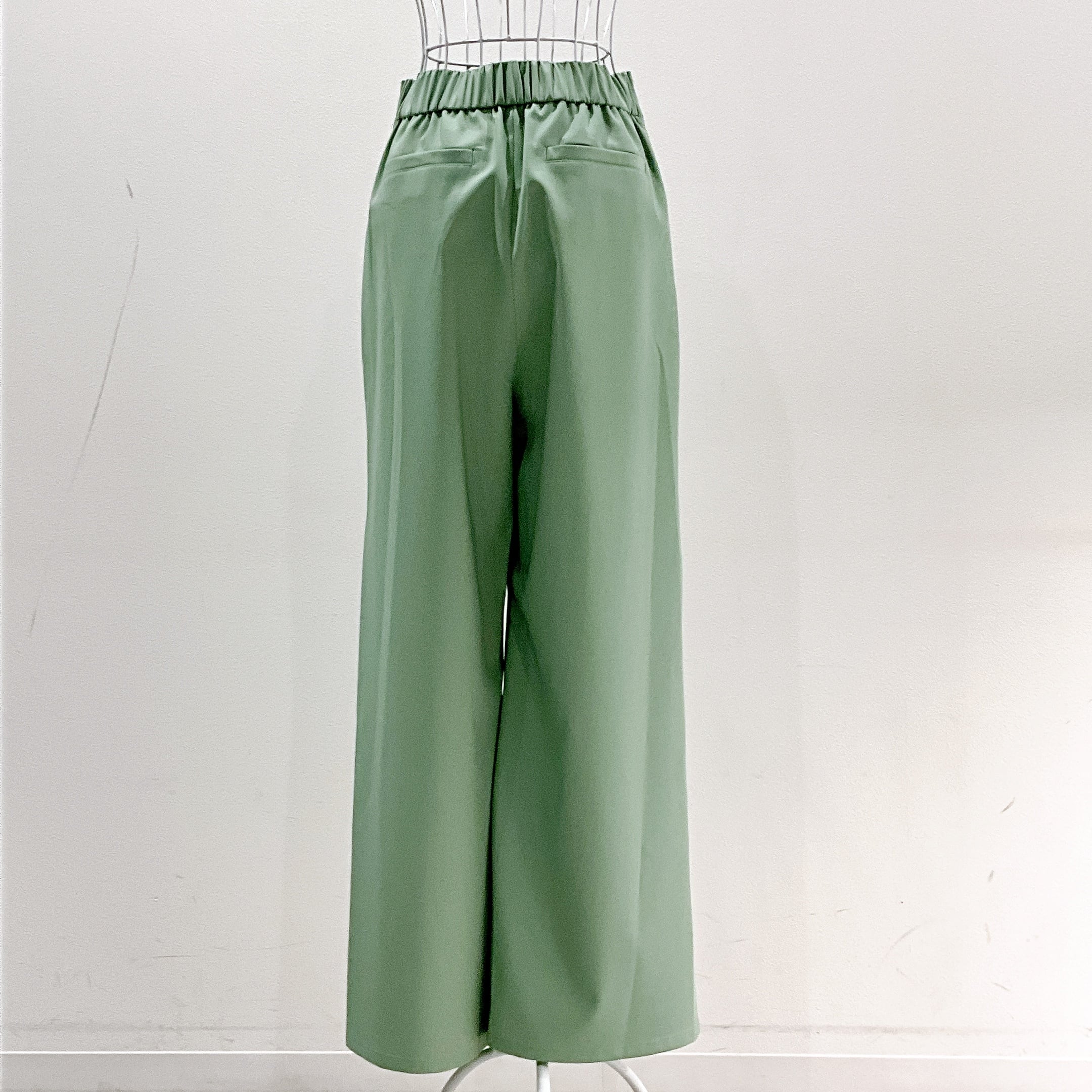ウエストは後ろゴム仕様で、見た目はきれいめ、穿き心地はリラックス感のある仕上がりです。