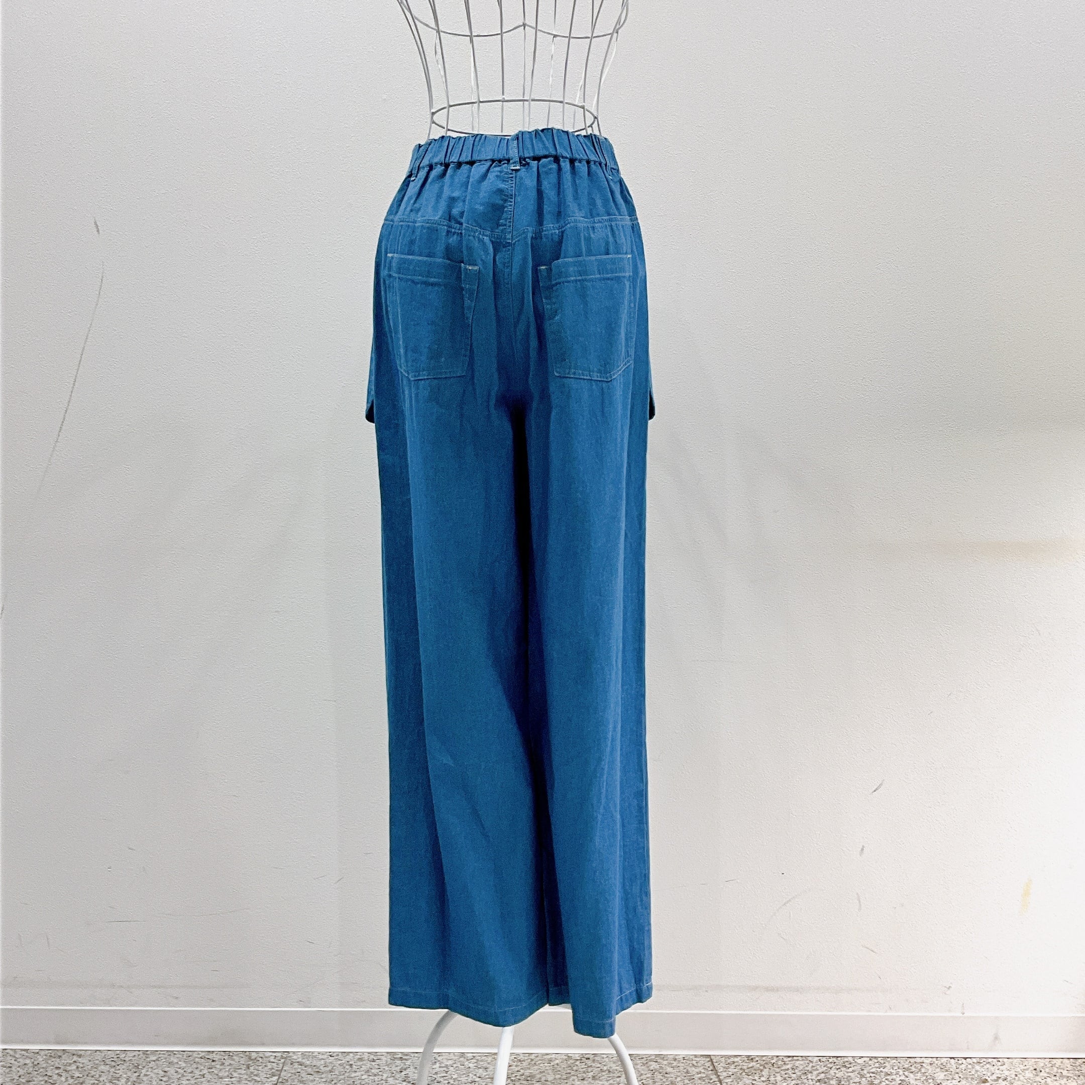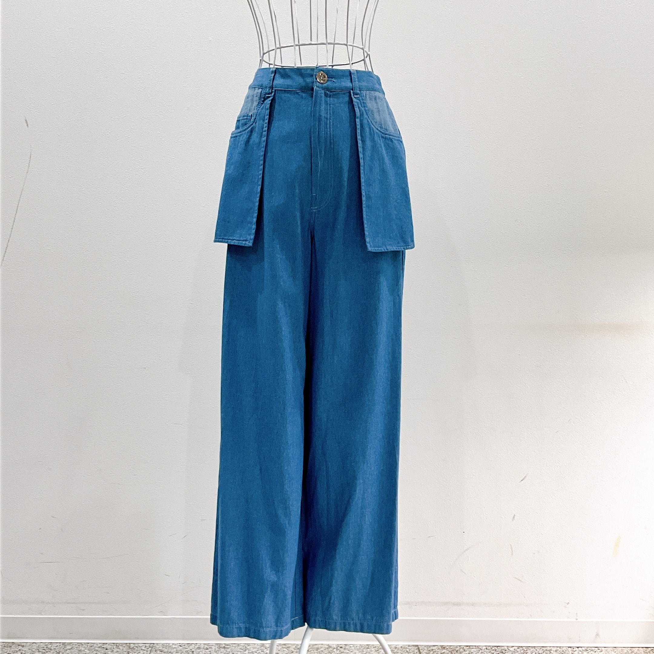 コットン100%デニム素材を使用した、上品カジュアルなワイドパンツ。