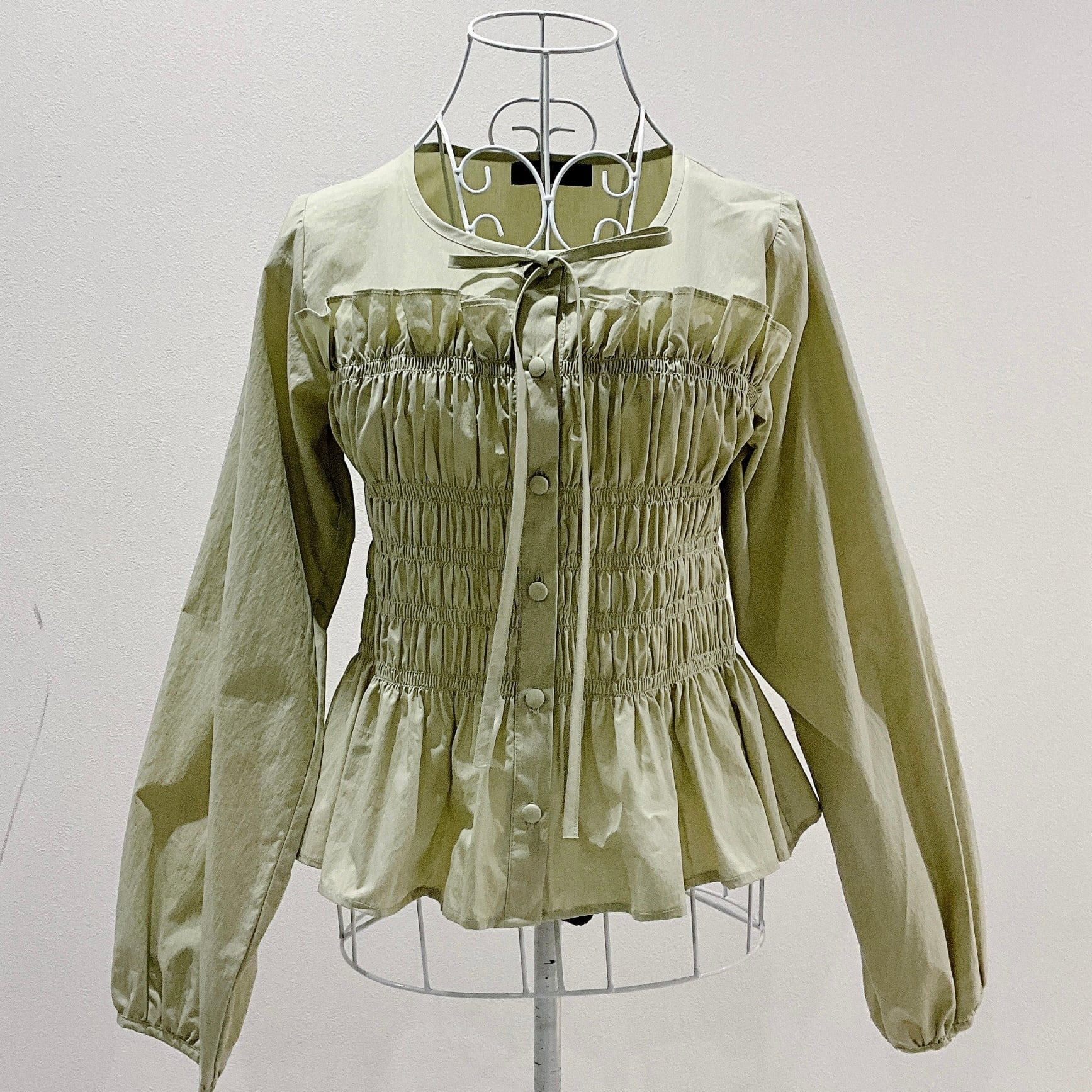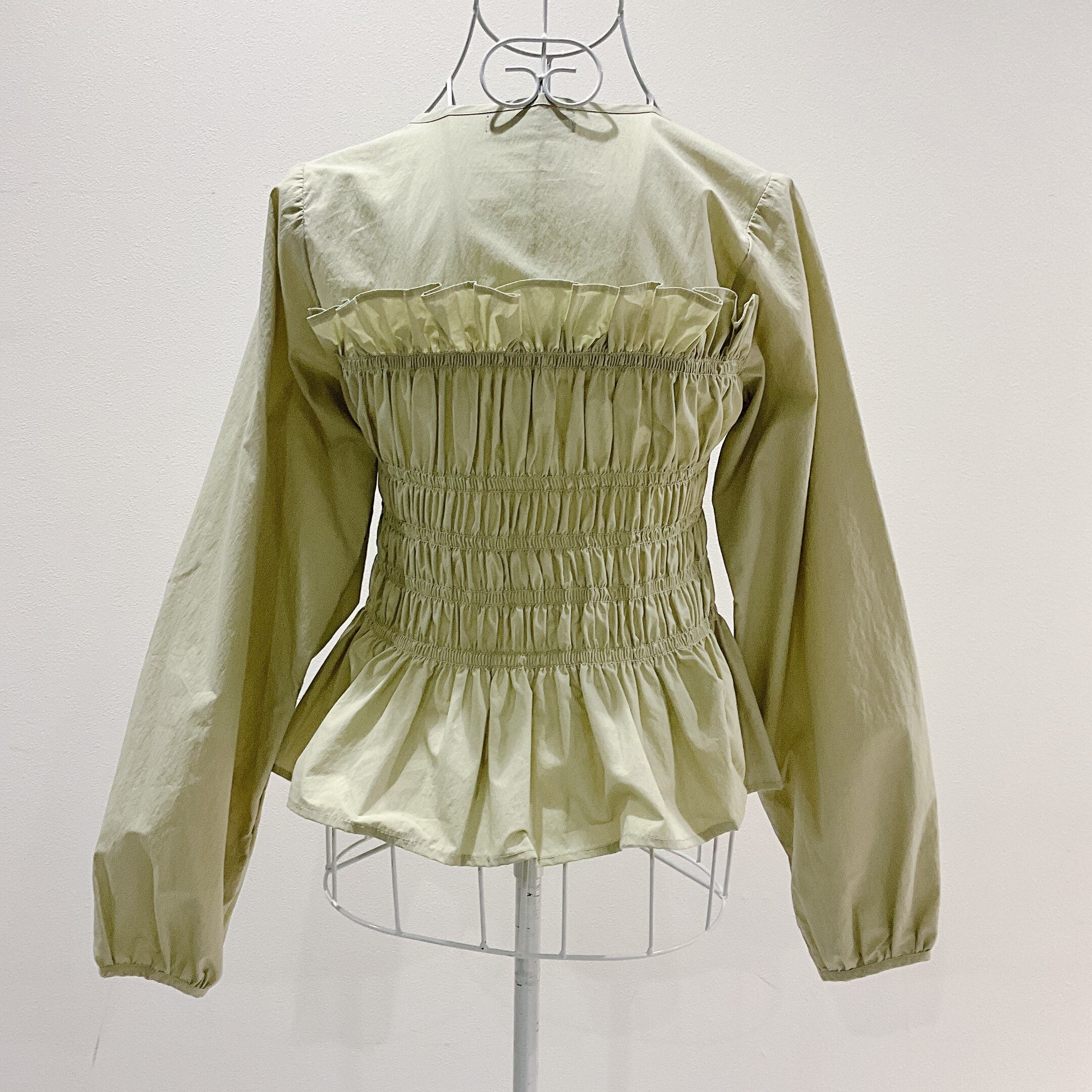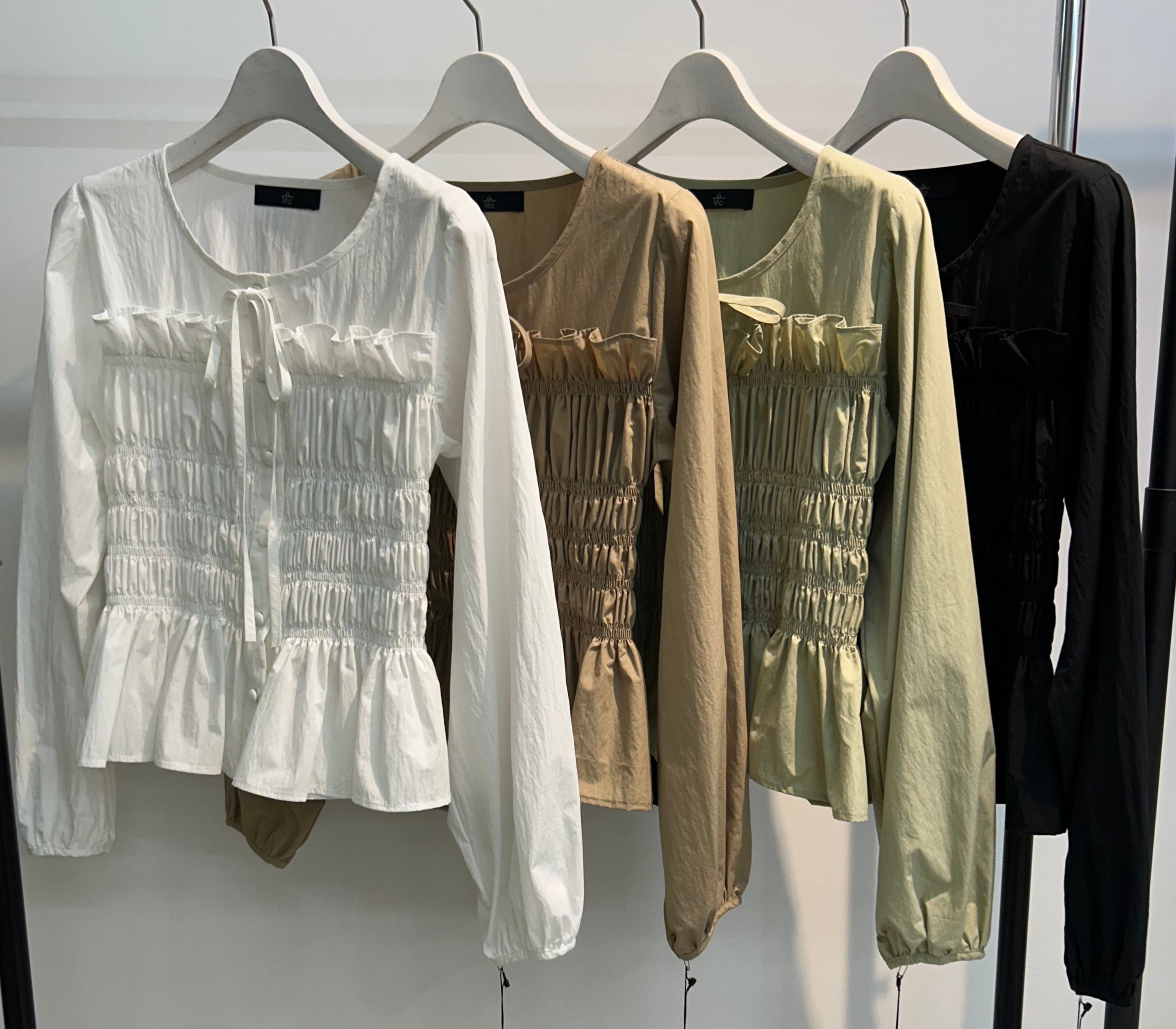 ★店頭受注販売限定★Mia Asterism(ミーア アステリズム)シャーリングデザイン ペプラムブラウス【1611085】