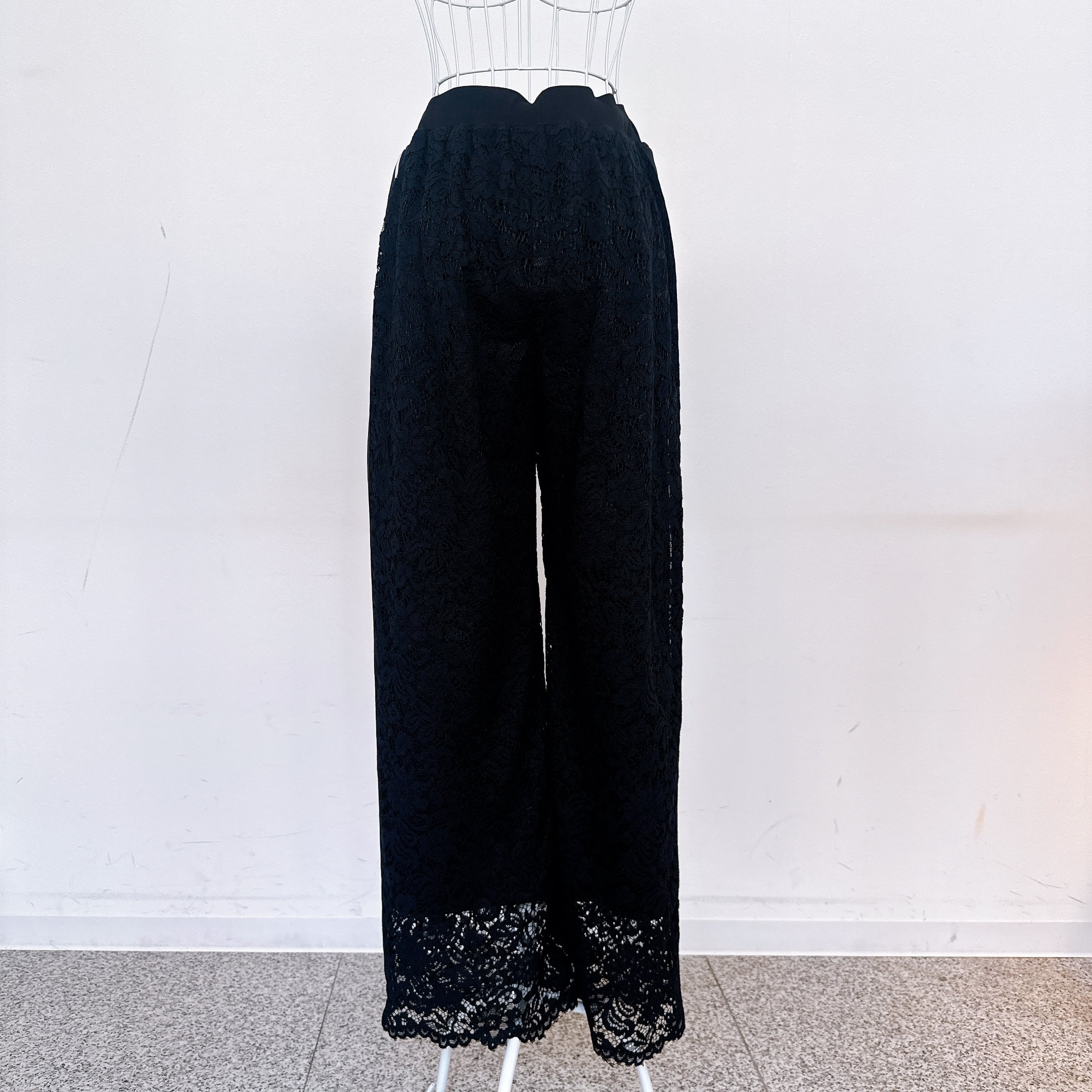 大人の甘辛ミックスを楽しめるレースワイドパンツ。
