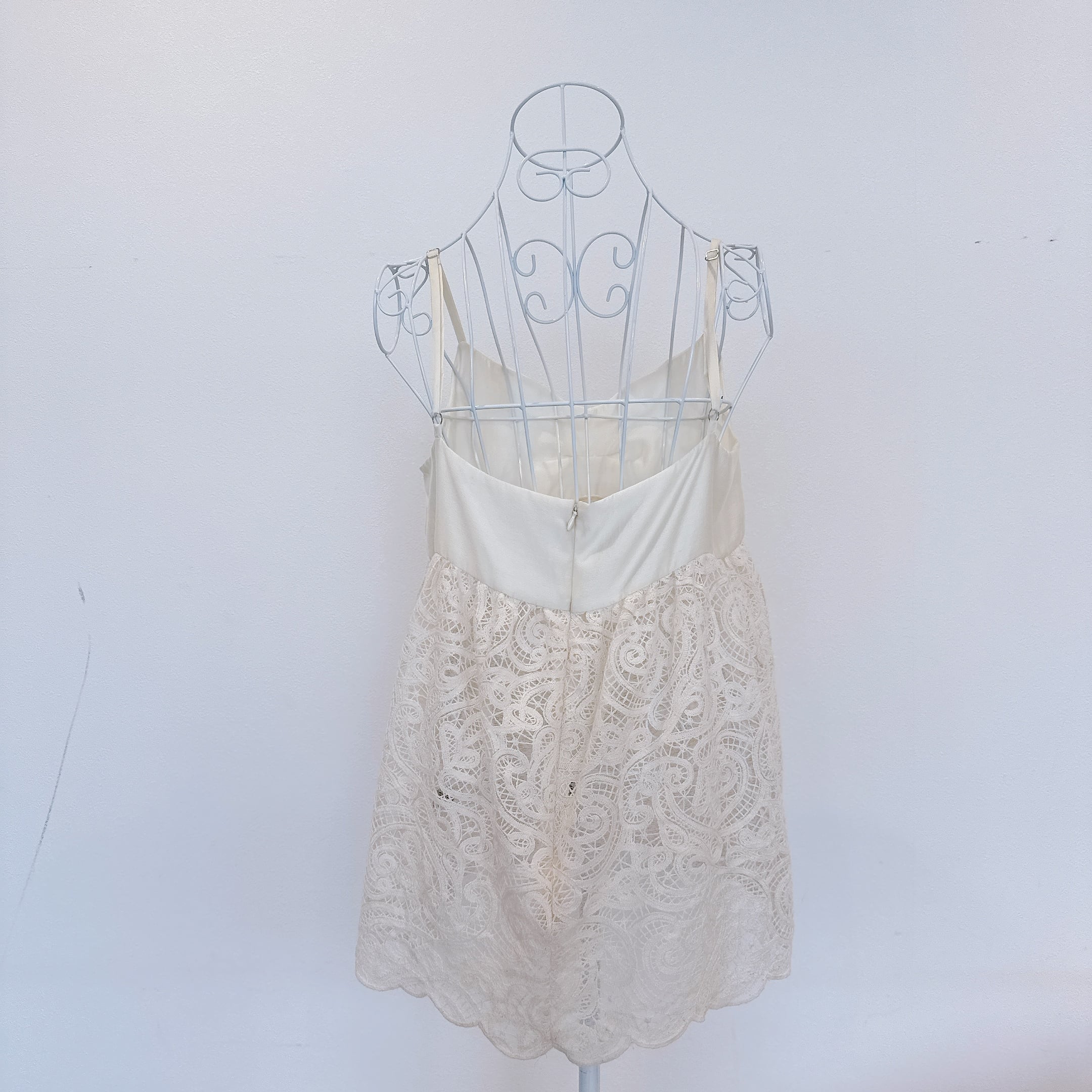裾部分には立体感のあるレースを贅沢に使用し、動くたびに軽やかな表情を演出します。