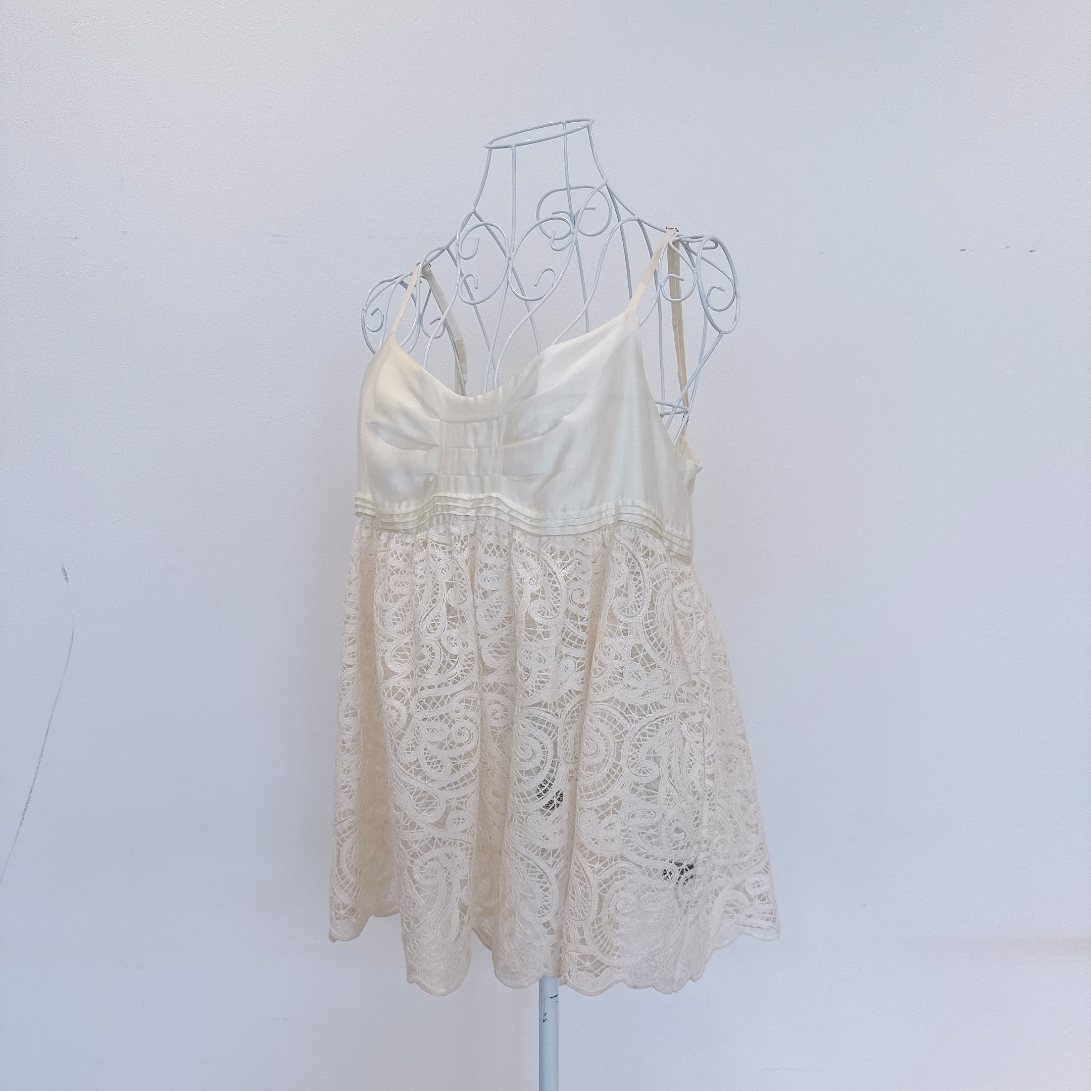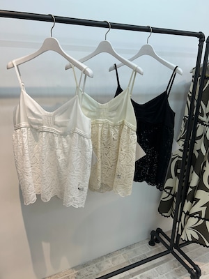 繊細なレースと柔らかな素材を組み合わせた、女性らしい雰囲気漂うキャミソールブラウス。