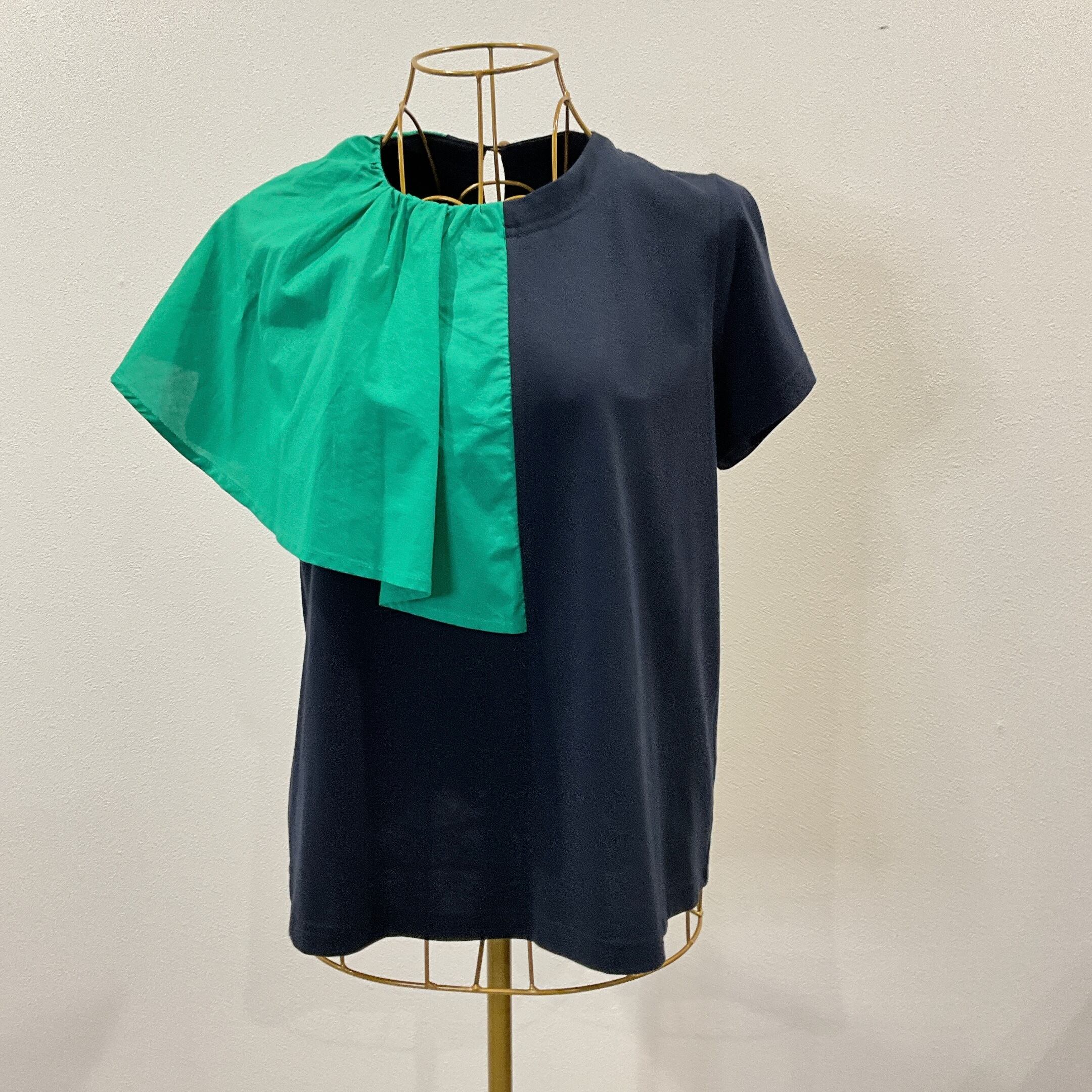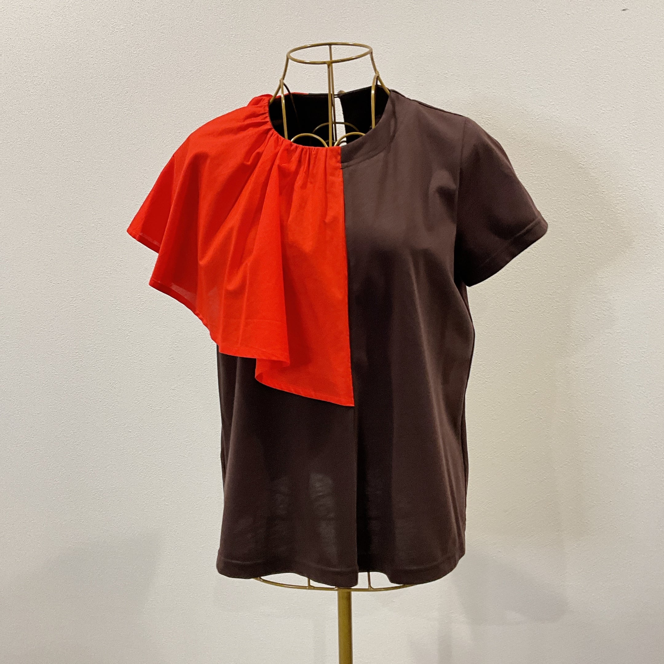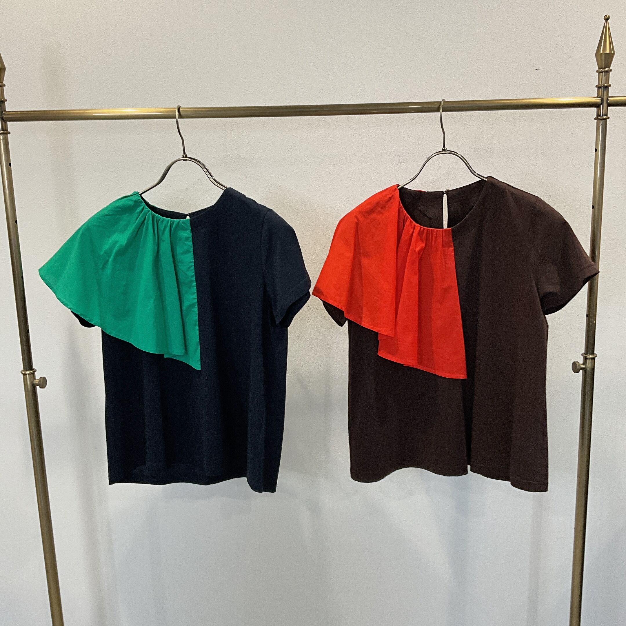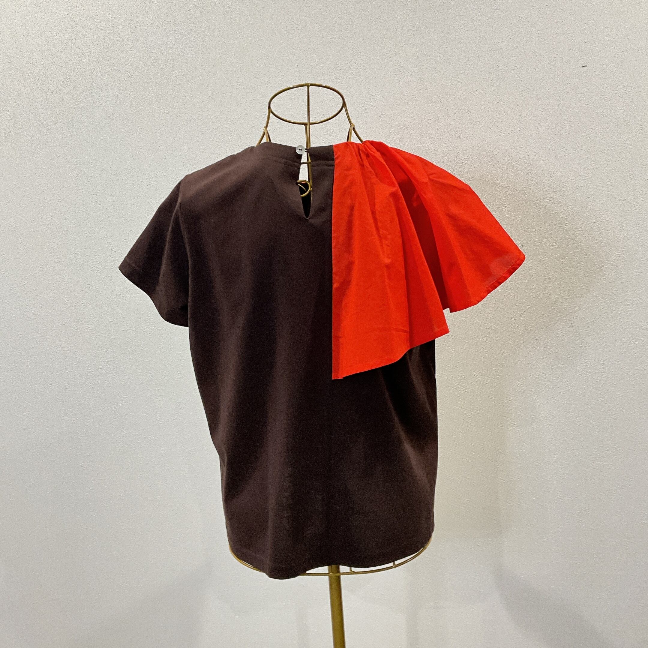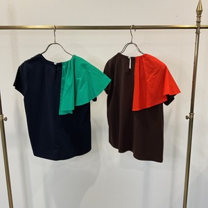 右肩の大きなラッフルフリルがアクセントのカットソー。