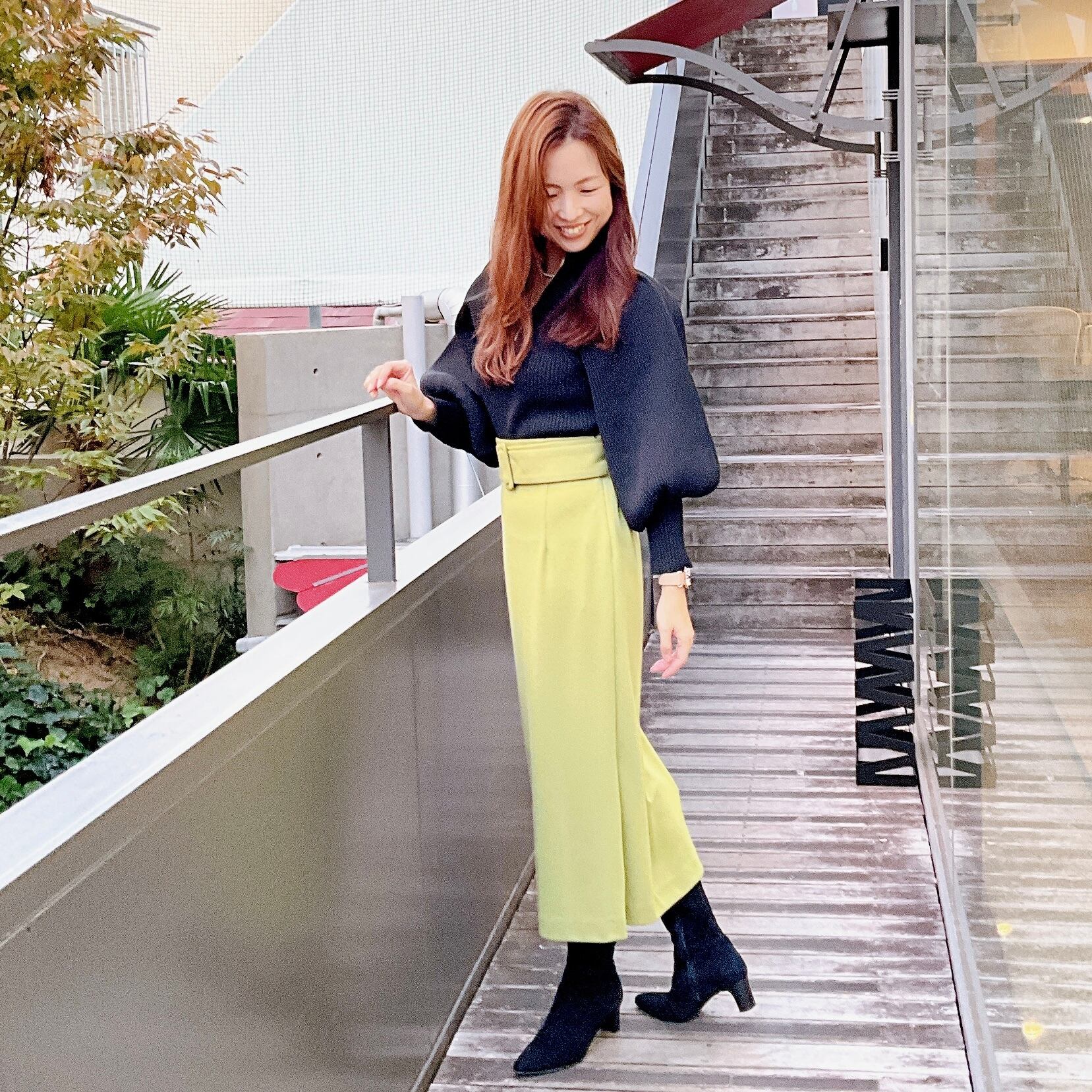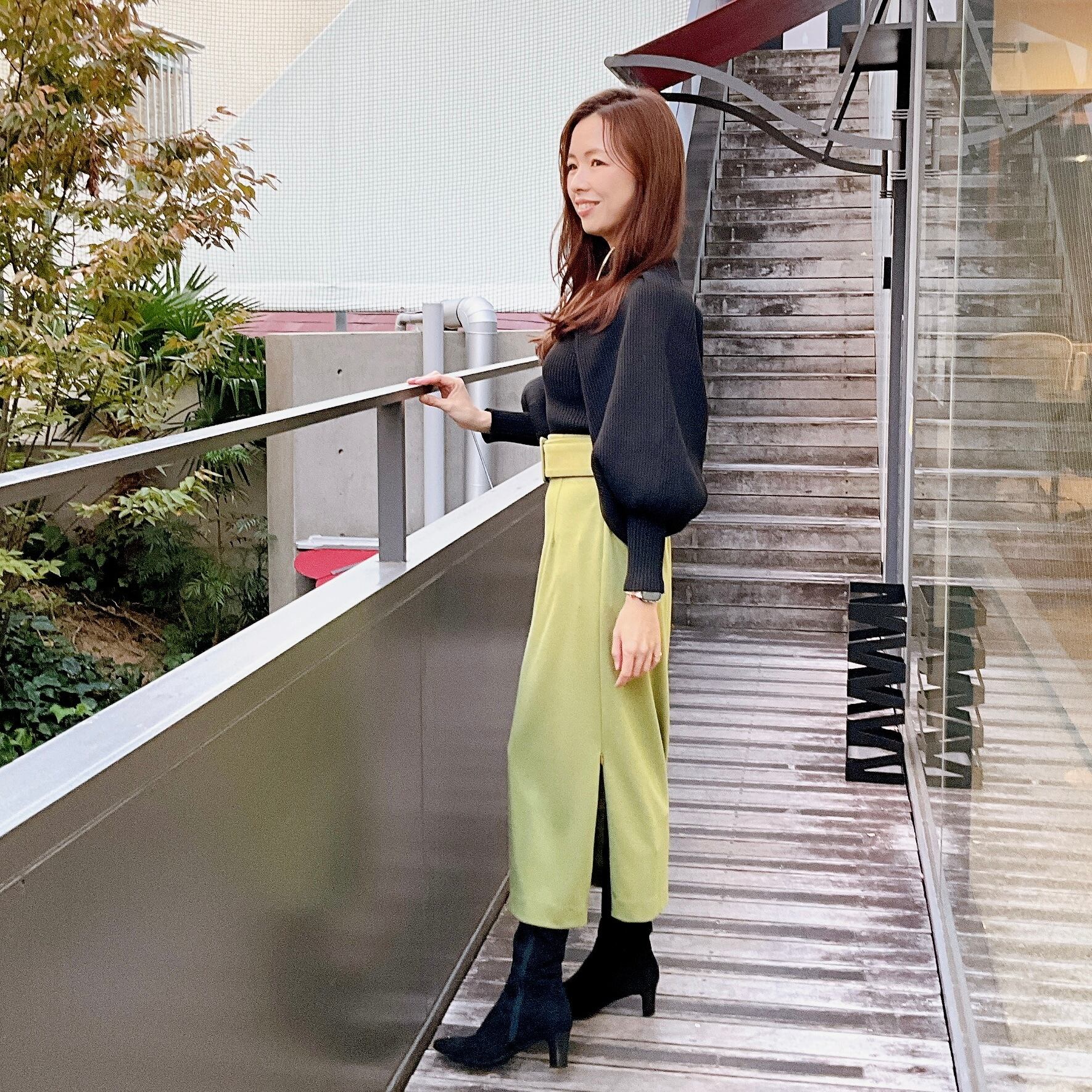 サイドのスリットがスッキリ綺麗な足元を演出し女性らしさUP