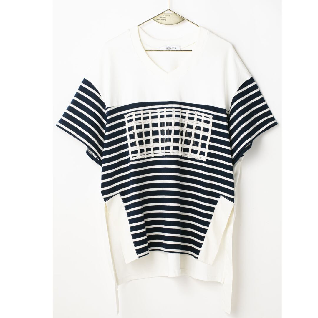 Lallia M'u (ラリア・ムー) Vネックボーダービックシャツ 2411541