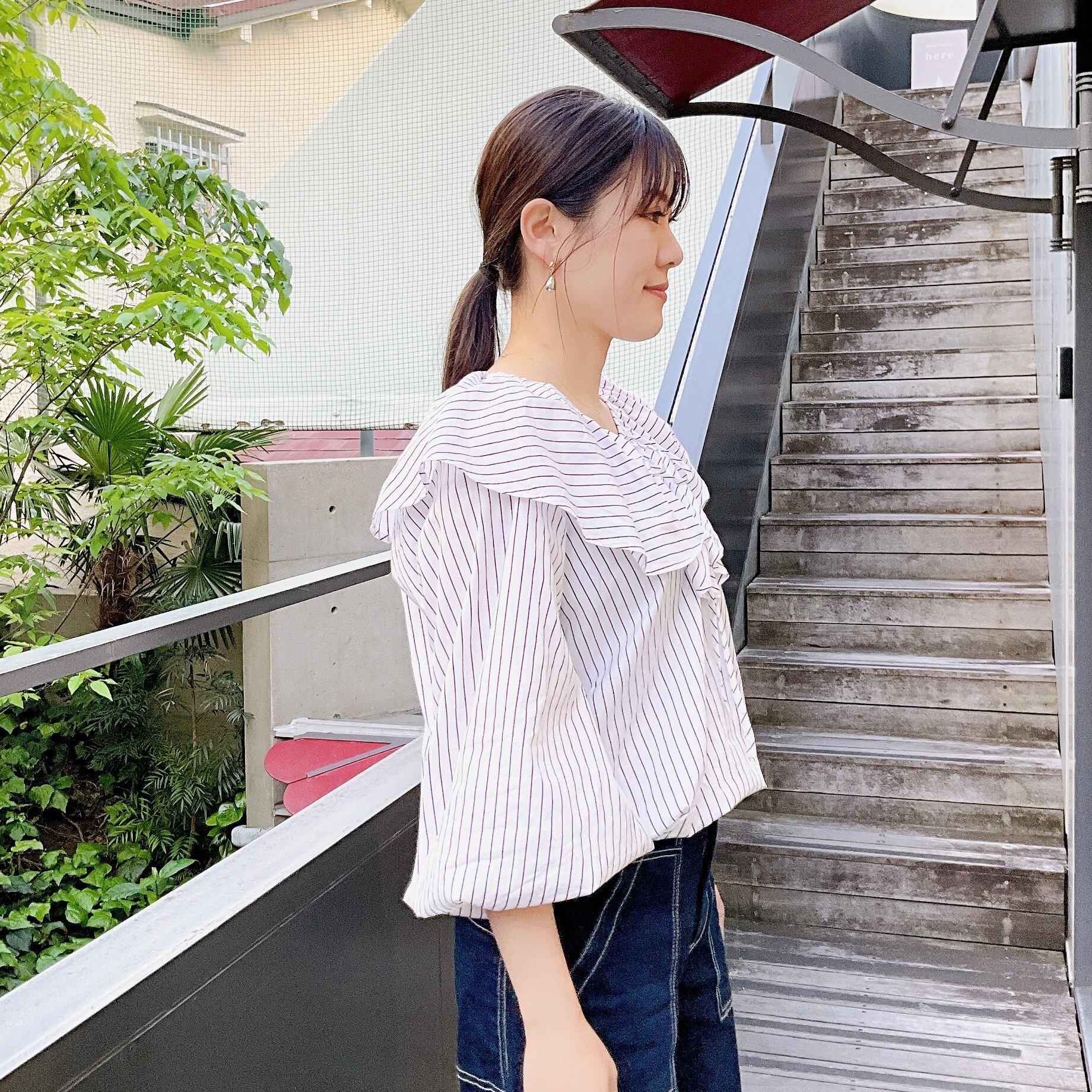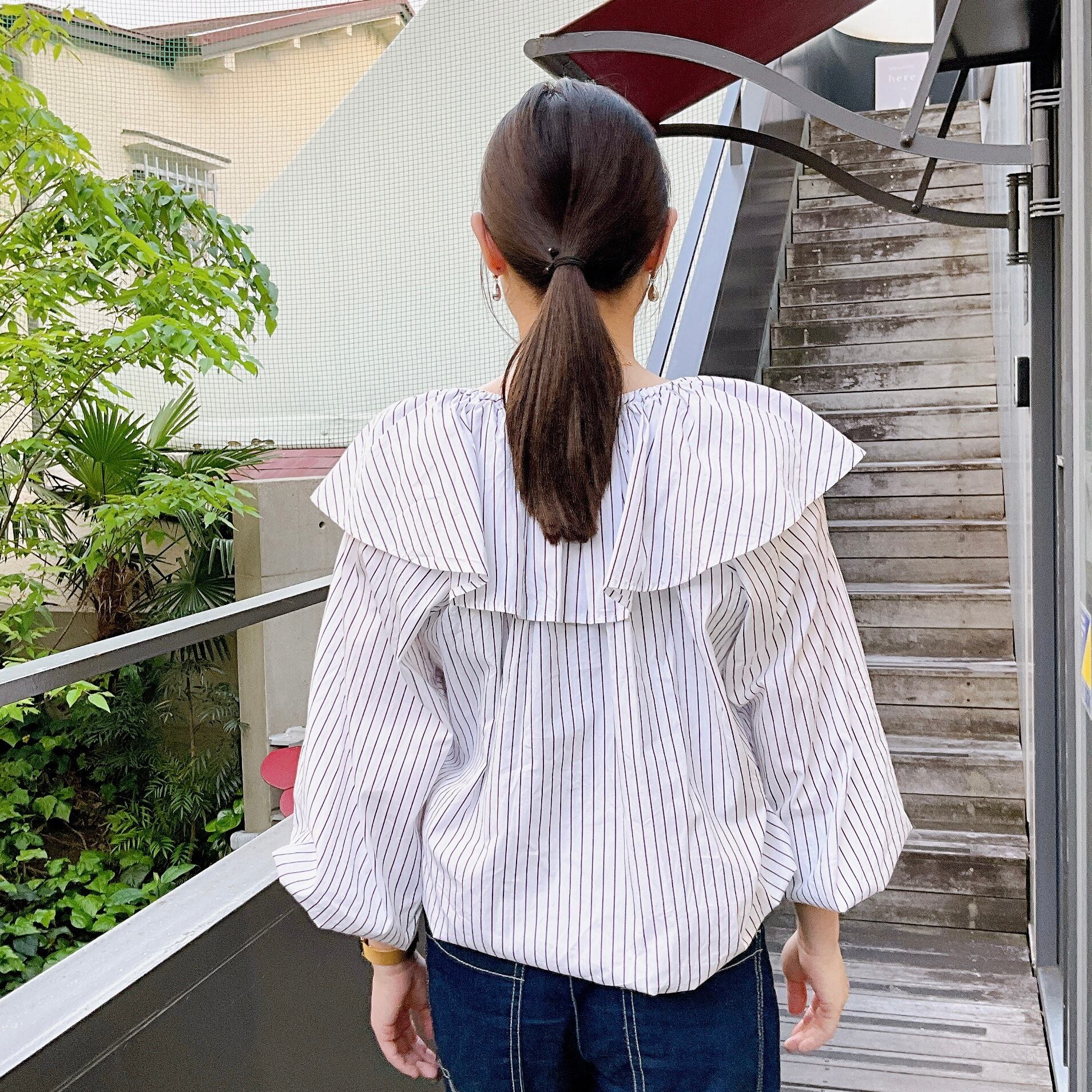 たっぷりと贅沢なラッフルカラーもリラクシーな生地によって気負いなく軽やかな印象に。